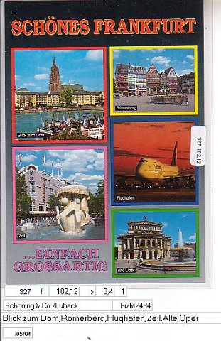Blick zum Dom, Römerberg, Flughafen, Zeil, Alte Oper