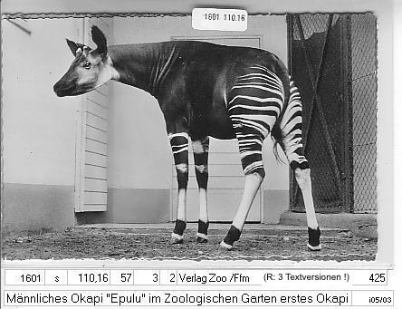 Männliches Okapi "Epulu" im Zool G..erstes Okapi in Dt (R: 3 Textversionen)