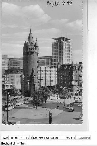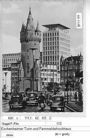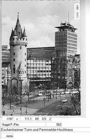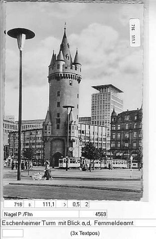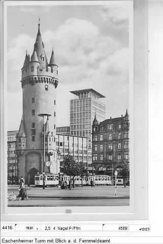Eschenheimer Turm mit Blick a, d, Fernmeldeamt (3x Textpos)