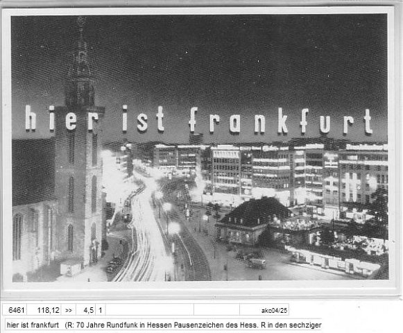 hier ist frankfurt (R: 70 Jahre Rundfunk in Hessen Pausenzeichen des Hess. R in den sechziger Jahren)