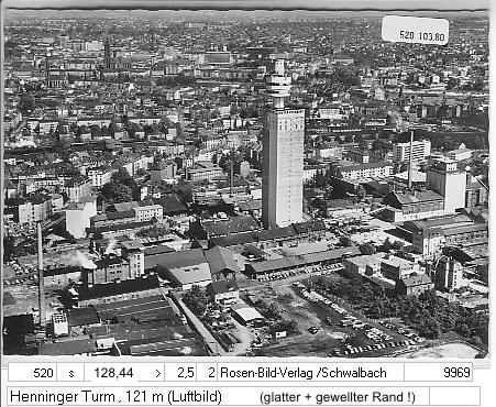 Henninger-Turm, Höhe 120m Hainerweg 60-64 mit Ffmer Drehscheibe... (2.Version R: Fra113 70/1 = Rosen-Bild-Verlag)