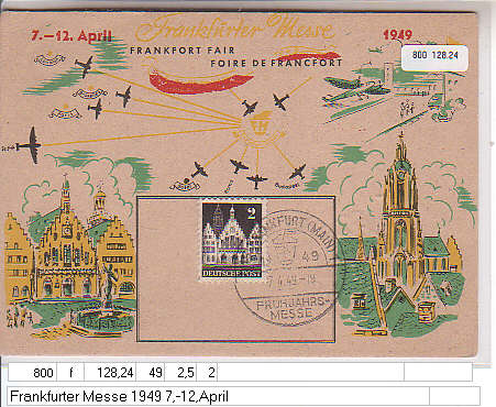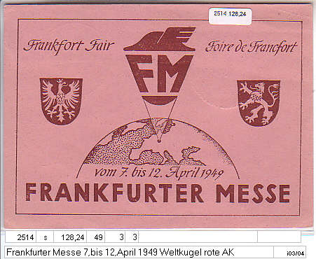 Frankfurter Messe 7, bis 12, April 1949 Weltkugel rote AK