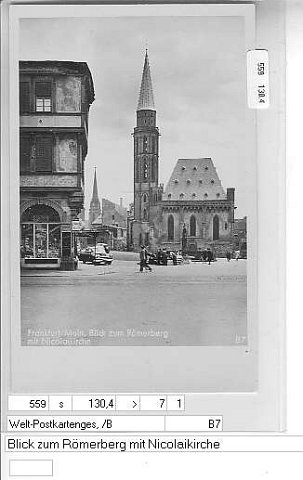 Gerechtigkeitsbrunnen und Nikolaikirche am Römerberg (R: Textposition)