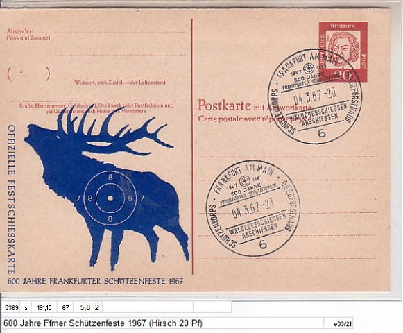 600 Jahre Ffmer Schützenfeste 1967 (Hirsch 20 Pf)