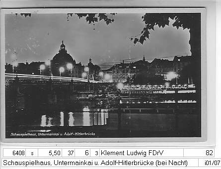 Schauspielhaus, Untermainkai u. Adolf-Hitlerbrücke (bei Nacht)