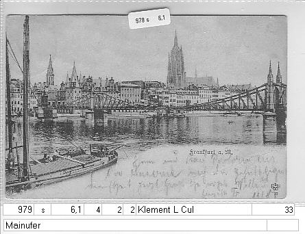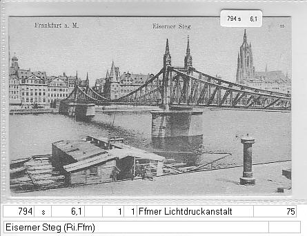 Ffm (Eiserner Steg mit Mainufer) (Schrift !)