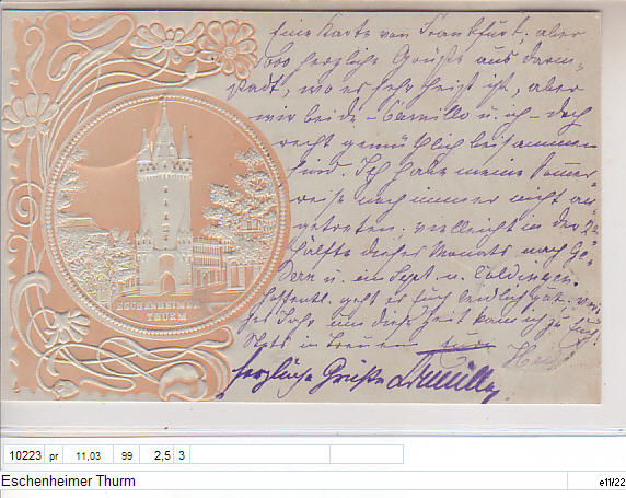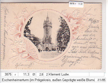 Eschenheimerturm (im Prägekreis, außen Geprägte weiße Blumen)
