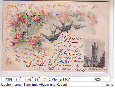 Eschenheimer Turm (mit Vögeln und Rosen)