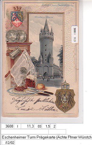 Eschenheimer Turm Prägekarte (Ächte Ffmer Würstchen)