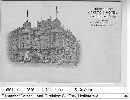 Fürstenhof Carlton-Hotel Direktion: C.J.Frey, Hoflieferant