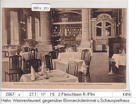 Hahn, Weinrestaurant; gegenüber Bismarckdenkmal u.Schauspielhaus
