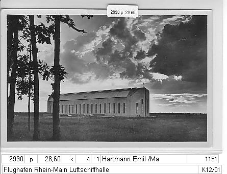 Weltluftschiffhafen Rhein-Main (Auto vor 2 Zeppelinhallen)