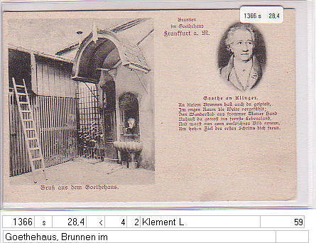 Goethehaus, Brunnen im; (Vers Rücks.: Goethe an Klinger)