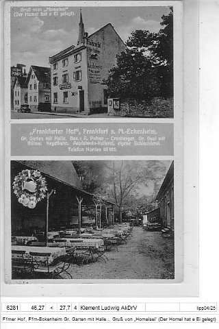 Ffmer Hof, Ffm-Eckenheim Gr. Garten mit Halle... Gruß von „Homel