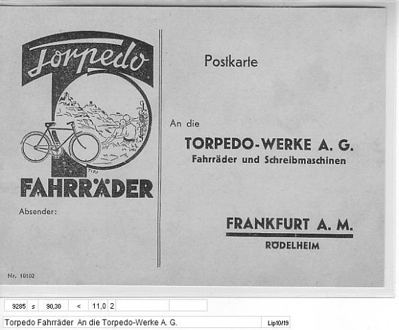 Torpedo Fahrräder-Schreibmaschinen Weilerwerkr A.G., Ffm