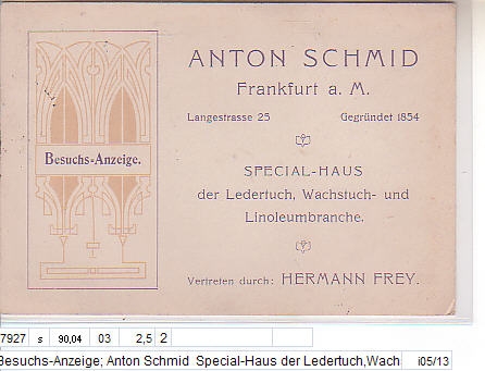 Besuchs-Anzeige; Anton Schmid Special-Haus der Ledertuch,Wachst