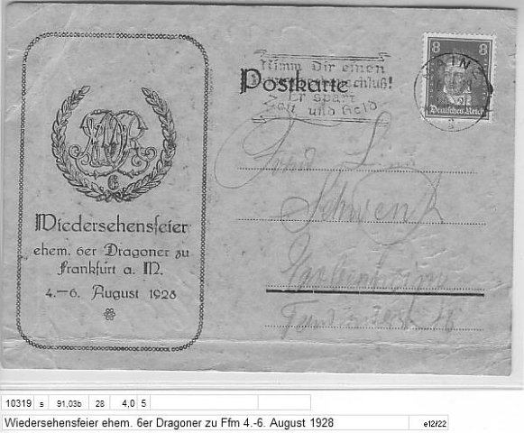 Wiedersehensfeier ehem. 6er Dragoner zu Ffm 4.-6. August 1928