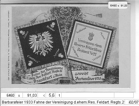Barbarafeier 1933 Fahne der Vereinigung d.ehem.Res. Feldart. Reg