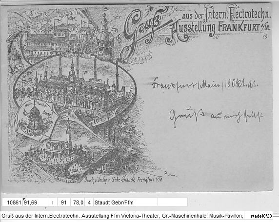 Gruß aus der Intern.Electrotechn. Ausstellung Ffm Victoria-theat