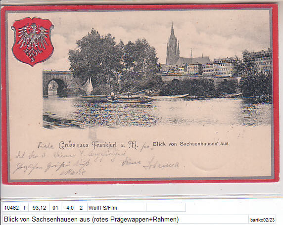 Blick von Sachsenhausen aus (rotes Prägewappen+Rahmen)