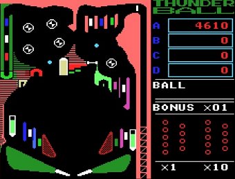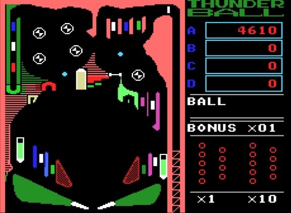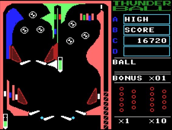 Fire Ball MSX 1988- balls: 3 / physics: 5 / graphic: 4 / layout: 3 / lost: 6 / game: 3 / fun: 5- score: 1.153 / impossible, fastcomputerstandard since 1982 comparable to C64 MSX&n- aiming not really possible, unprecise when at flippers; arrows to select: load tables-samples-number-space-yesRollerball MSX 1984- balls: ? / physics: ? / graphic: ? / layout: 4 / lost: ? / game: ? / fun: ?- connected playfields, no key found for le flipper; return=plunger+ri flipperThunderball (1) MSX 1985- balls: 4 / physics: 6 / graphic: 6 / layout: 6 / lost: 5 / game: 4 / fun: 6- score: 12.300 / very jumpy and difficultThunderball (10) MSX 1985- balls: ? / physics: 6 / graphic: 6 / layout: 5 / lost: ? / game: ? / fun: ?- doesn`t startThunderball (2) MSX 1985- balls: 4 / physics: 5 / graphic: 6 / layout: 5 / lost: 5 / game: 4 / fun: 5- score: 18.340 / better aimingThunderball (3) MSX 1985- balls: 4 / physics: 6 / graphic: 6 / layout: 6 / lost: 5 / game: 4 / fun: 6- score: 8.720 / double flippers are unpredictableThunderball (4) MSX 1985- balls: 4 / physics: 6 / graphic: 6 / layout: 5 / lost: 5 / game: 4 / fun: 4- score: 11.750 / MB, a killerThunderball (5) MSX 1985- balls: 4 / physics: 5 / graphic: 6 / layout: 5 / lost: 5 / game: 4 / fun: 5- score: 14.100Thunderball (6) MSX 1985- balls: 4 / physics: 6 / graphic: 6 / layout: 5 / lost: 6 / game: 4 / fun: 5- score: 9.430 / unplayable; jumps off the flippersThunderball (7) MSX 1985- balls: 4 / physics: 6 / graphic: 6 / layout: 5 / lost: 6 / game: 4 / fun: 6- score: 16.720 / deadly double flippersThunderball (8) MSX 1985- balls: 4 / physics: 6 / graphic: 6 / layout: 5 / lost: 6 / game: 4 / fun: 6- score: 4.610 / unplayable, flippers too weak GameBoysNintendo