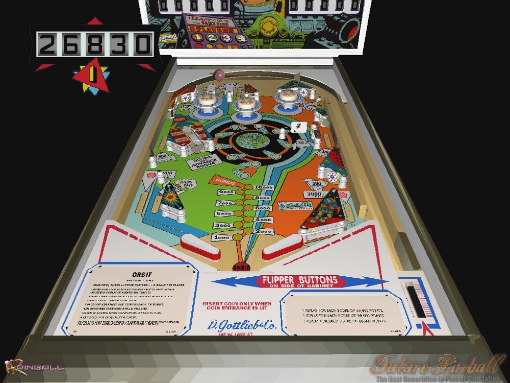 Neptune (CD conversion) FP - 1978 / or VP- balls: 5; graphic: 3; lost: 1; game: 2; layout: 6; fun: 5- score: 553.800 / add-a-ballNightmare (PC conversion) FP - 1992 / or VP- balls: 3; graphic: 2; lost: 1; game: 2; layout: 3; fun: 2- score: 82.369.396 / splendid conversionNight Rider (Bally) FP - 1977 / also in VPM - balls: 5; graphic: 3; lost: 6; game: 5; layout: 6; fun: 6- score: 47.600 / unplayable, unnaturally fast physicsNine Sisters (Williams) FP - 1953- balls: 5; graphic: 3; lost: 5; game: 5; layout: 6; fun: 6- score: 5.970.000 / ball falls back way from plunger; one flipper!Nip-It (Bally) FP - 1972 / or VP- balls: 5; graphic: 3; lost: 3; game: 4; layout: 4; fun: 5- score: 359.000Nitro Ground Shaker (Bally) FP - 1979 / also- balls: 5; graphic: 2; lost: 5; game: 4; layout: 6; fun: 5- score: 477.400North Star (Gottlieb) FP - 1964 / or VP- balls: 5; graphic: 5; lost: 4; game: 4; layout: 6; fun: 4- score: 1.261O Gaucho (LTD do Brasil) FP - 1975 / or VP- balls: 5; graphic: 4; lost: 6; game: 5; layout: 5; fun: 5- score: 81.020 / unplayableOh Boy (Williams) FP - 1964- balls: 5; graphic: 4; lost: 6; game: 5; layout: 5; fun: 5- score: 1.736 / unplayable, trickyOld Chikago (Bally) FP - 1975 / or VP- balls: 5; graphic: 1; lost: 5; game: 2; layout: 5; fun: 5- score: 217.120Olympics (Gottlieb) FP - 1962 / or VP- balls: 5; graphic: 1; lost: 6; game: 3; layout: 6; fun: 5- score: 1.032 / impossible, every contact with slingshots end up in outlanesOrbit (Bally) = Outer Space FP - 1971 / or V- balls: 5; graphic: 2; lost: 4; game: 2; layout: 5; fun: 4- score: 126.830 Future Pinball MFuture Pinball P-Q