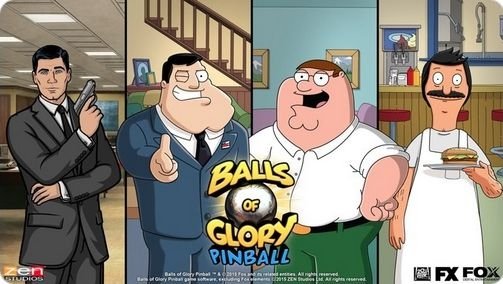 Balls of Glory Pinball FX2/3 / STEAM 2015Balls of Glory theme on 4 tables, not quite attractive like othersTitle American Dad FX2-2015- balls: 3 / graphic: 3 / lost: 2 / game: 2 / layout: 2 / fun: 2- score: 328.265.577 / smooth playingArcher Pinball FX2 2015- balls: 3 / graphic: 4 / lost: 6 / game: 5 / layout: 5 / fun: 6 - score: 10.169.374 / absolutely unplayable, kills everything especially by outlanes, a…Bob`s Burger Pinball FX2-2015- balls: 3 / graphic: 2 / lost: 6 / game: 3 / layout: 3 / fun: 3- score: 63.054.797 Family Guy FX2-2015- balls: 3 / graphic: 2 / lost: 5 / game: 3 / layout: 4 / fun: 5- score: 167.031.625 / getting boringSouthpark Pinball FX2 / STEAM >2015- balls: 3 lives / graphic: 4 / lost: 5 / game: 4 / layout: 5 / fun: 5- score: / video shooter: avoid planes + missiles; family guy Aliens vs PinballBethesda Pinball