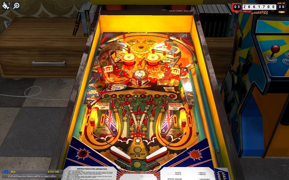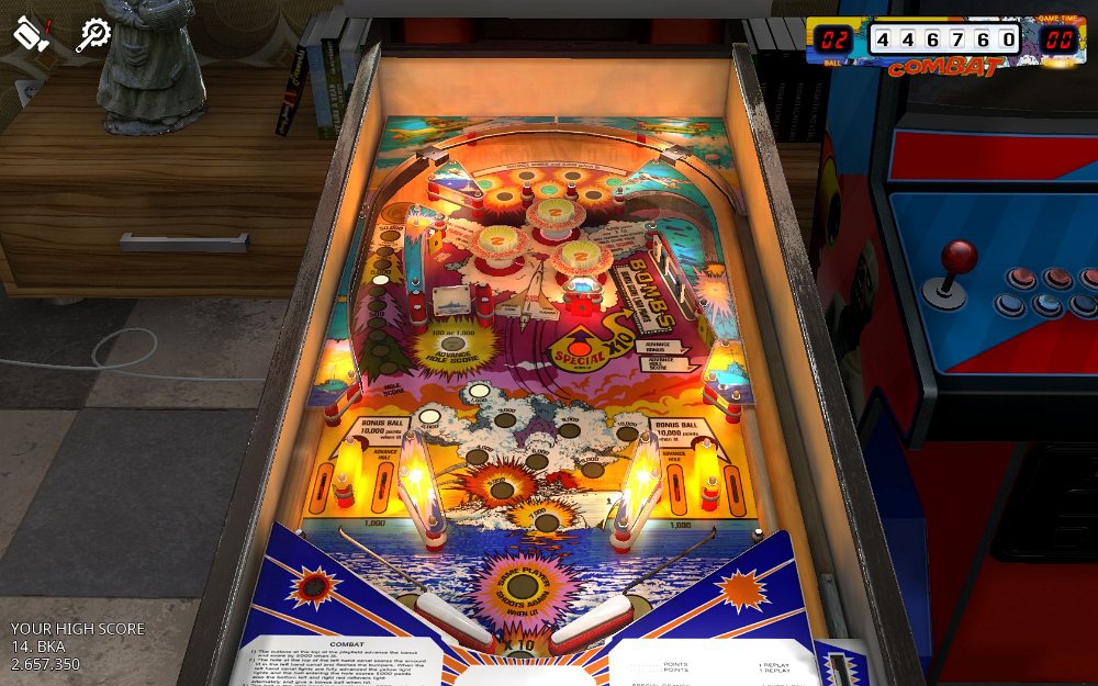 Zaccharia EM`s 1974-77 / STEAMrecreations of Zaccaria tables 1974-1977, good physics, rather fast lostCombat EM = Nautilus Zaccaria 1977- balls: 3(5) / graphic: 2 / lost: 2 / game: 5 / layout: 6 / fun: 5- score: 2.657.350 / easy MBCircus EM Zaccaria 1977- balls: 3(5) / graphic: 1 / lost: 2 / game: 4 / layout: 6 / fun: 3- score: 1.440.240 / easy XBs, smooth playingLucky Fruit EM Zaccaria 1975- balls: 3(5) / graphic: 3 / lost: 3 / game: 4 / layout: 6 / fun: 5- score: 498.800 Moon Flight EM Zaccaria 1976- balls: 3(5) / graphic: 2 / lost: 3 / game: 5 / layout: 6 / fun: 5- score: 2.088.800 Nautilus EM =Combat Zaccaria 1977- balls: 3(5) / graphic: 2 / lost: 5 / game: 4 / layout: 5 / fun: 4- score: 10.944.900 / display should be 6 digitRed Show EM Zaccaria 1974- balls: 3(5) / graphic: 3 / lost: 6 / game: 5 / layout: 5 / fun: 4- score: 972.830 / unplayable; display should be 6 digitSupersonic EM Zaccaria 1977- balls: 3(5) / graphic: 4 / lost: 6 / game: 4 / layout: 5 / fun: 5- score: 3.824.200 / impossible, ball lost in secondsTop Hand EM Zaccaria 1974- balls: 3(5) / graphic: 3 / lost: 5 / game: 6 / layout: 5 / fun: 5- score: 50.460 / difficultTropical EM Zaccaria 1975- balls: 3(5) / graphic: 3 / lost: 6 / game: 6 / layout: 6 / fun: 6- score: 568.800 / unplayable; display should be 6 digitUniverse EM Zaccaria 1977- balls: 3(5) / graphic: 4 / lost: 5 / game: 5 / layout: 5 / fun: 5- score: 407.560 / impossible, outlanes kill every ball that gets nearAerobatics EM Zaccaria 1977- balls: 3(5) / graphic: 2 / lost: 6 / game: 4 / layout: 6 / fun: 2- score: 6.197.100 / nice playing possible Zaccaria deluxeZaccaria remakes
