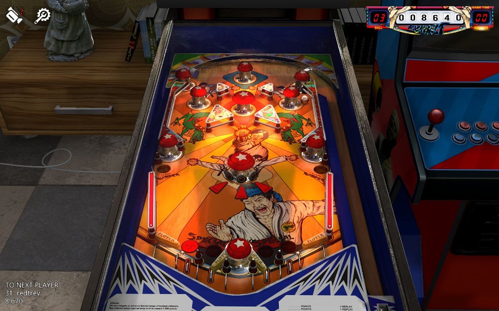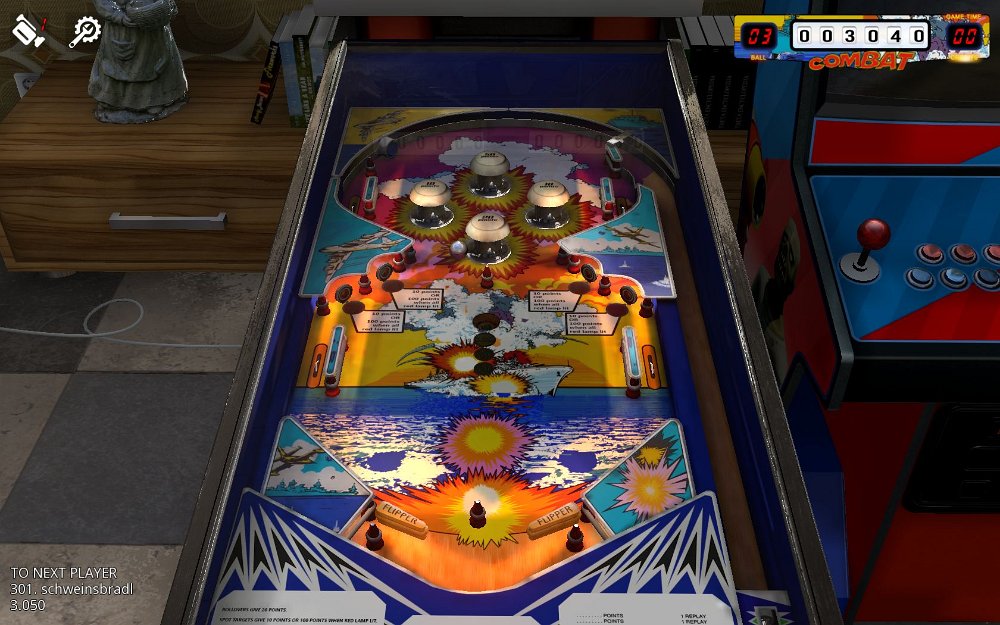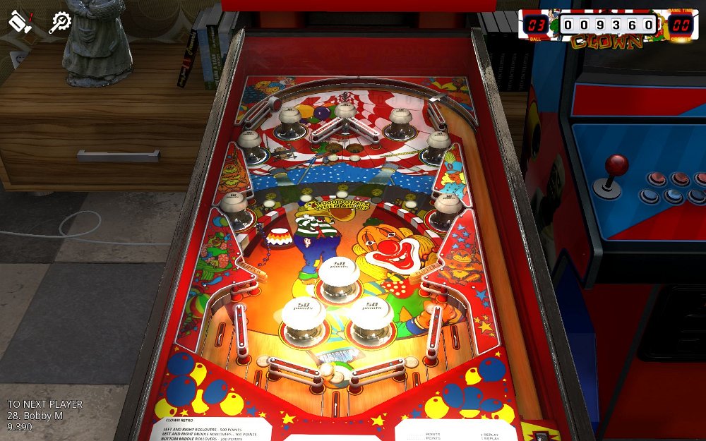 Zaccharia Retro / STEAM >2016style of 60`s and early 70`s, good physics, a bit jumpy near flippers, balls lost bloody fast, poor layout, camera 1(in game) for static viewZaccharia Retro / STEAM >2016style of 60`s and early 70`s, good physics, a bit jumpy near flippers, balls lost bloody fast, poor layout, camera 1(in game) for static viewCombat Retro STEAM 2016- balls: 3(5) / graphic: 4 / lost: 6 / game: 5 / layout: 6 / fun: 4- score: 3.400 / insane, looks so easyBleckbelt Retro STEAM 2018- balls: 3(5) / graphic: 4 / lost: 6 / game: 5 / layout: 6 / fun: 3- score: 8.680 / unplayable, brain won`t switch flipper sidesClown Retro STEAM 2018- balls: 3(5) / graphic: 3 / lost: 6 / game: 6 / layout: 5 / fun: 5- score: 9.460 / lucky if you touch the ballDevil Riders Retro STEAM 2018- balls: 3(5) / graphic: 3 / lost: 5 / game: 5 / layout: 6 / fun: 6- score: 11.680 / unplayableEarth Wind and Fire Retro STEAM 2016- balls: 3(5) / graphic: 3 / lost: 2 / game: 2 / layout: 5 / fun: 3- score: 9.370 Farfalla Retro STEAM 2016- balls: 3(5) / graphic: 3 / lost: 6 / game: 6 / layout: 6 / fun: 5- score: 10.080 / impossibleFire Mountain Retro STEAM 2018- balls: 3(5) / graphic: 4 / lost: 6 / game: 3 / layout: 6 / fun: 3- score: 7.400 Hot Wheels Retro STEAM 2017- balls: 3(5) / graphic: 3 / lost: 6 / game: 6 / layout: 6 / fun: 4- score: 8.950 / impossible, tricky with right-left reversed flippersHouse of Diamonds Retro STEAM 2017- balls: 3(5) / graphic: 4 / lost: 6 / game: 6 / layout: 6 / fun: 5- score: 2.190 / insane, MB Zaccaria remakesZaccaria ss-Tables recreations