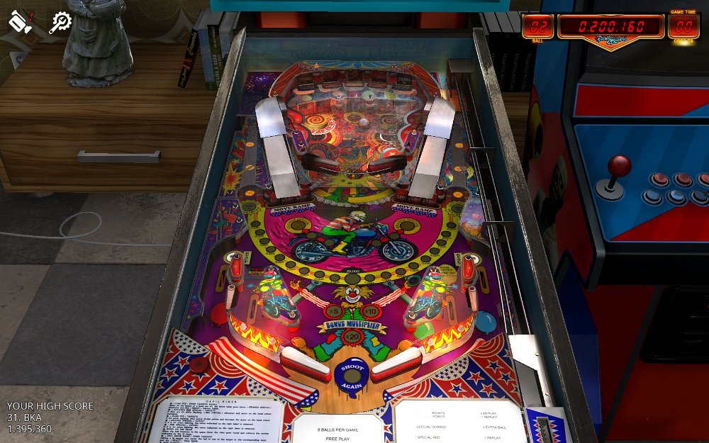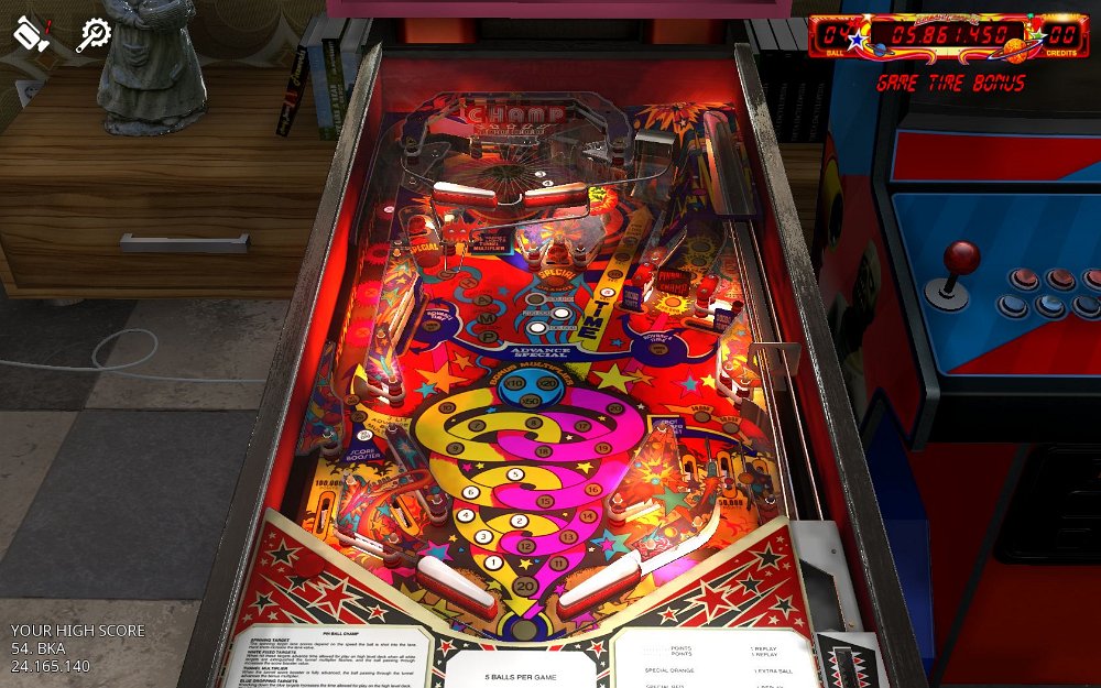 Zaccaria recreations 1978-87 / STEAMrecreation of real Zaccaria tables with good physics moderate layouts, fast lost, no MB`s?Blackbelt Zaccaria 1986- balls: 3(5) / graphic: 3 / lost: 5 / game: 2 / layout: 4 / fun: 4- score: 13.315.570 Clown Zaccaria 1985- balls: 3(5) / graphic: 3 / lost: 6 / game: 3 / layout: 5 / fun: 4- score: 8.409.090 / unplayableDevil Riders Zaccaria 1984- balls: 3(5) / graphic: 4 / lost: 6 / game: 5 / layout: 5 / fun: 5- score: 1.395.360 / impossible, big points only in upper playfieldEarth Wind & Fire Zaccaria 1981- balls: 3(5) / graphic: 3 / lost: 6 / game: 6 / layout: 5 / fun: 5- score: 330.810 / unplayableFarfalla Zaccaria 1983- balls: 3(5) / graphic: 3 / lost: 6 / game: 4 / layout: 4 / fun: 5- score: 1.848.780 / big points only in upper playfieldFire Mountain Zaccaria 1980- balls: 3(5) / graphic: 3 / lost: 6 / game: 3 / layout: 5 / fun: 2- score: 603.970 / impossibleFuture World Zaccaria 1978- balls: 3(5) / graphic: 2 / lost: 6 / game: 3 / layout: 4 / fun: 3- score: 859.060 / unplayableLocomotion Zaccaria 1981- balls: 3(5) / graphic: 4 / lost: 6 / game: 5 / layout: 4 / fun: 5- score: 585.110 Magic Castle Zaccaria 1984- balls: 3(5) / graphic: 4 / lost: 5 / game: 3 / layout: 5 / fun: 5- score: 7.525.970 Mexico `86 Zaccaria 1986- balls: 3(5) / graphic: 4 / lost: 4 / game: 4 / layout: 5 / fun: 6- score: 9.808.900 / poor layoutPinball Champ82 Zaccaria 1982- balls: 3(5) / graphic: 3 / lost: 3 / game: 3 / layout: 4 / fun: 4- score: 24.165.140 Zaccaria retros