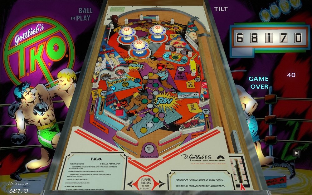 Toledo 1975 / VP9 vrc1- balls: 5 / graphic: 1 / lost: 2 / game: 3 / layout: 6 / fun: 2- score VP 8: 564.760- score VP 9: 695.120T.K.O. 1979 / VP10 - balls: 5 / graphic: 2 / lost: 3 / game: 5 / layout: 6 / fun: 5- score VP10: 68.170T.K.O. (Gottlieb) 1979 / VP10 - balls: 5 / graphic: 3 / lost: 4 / game: 4 / layout: 6 / fun: 6- score VP10: 112.210Tam-Tam (Playmatic) 1975 / VP10 - balls: 5 / graphic: 2 / lost: 2 / game: 3 / layout: 6 / fun: 5- score VP10: 102.300 / v2023: impossibleTarget Alpha (Gottlieb) = Gold Strike=El Dorado 197- balls: 5 / graphic: 2 / lost: 3 / game: 3 / layout: 6 / fun: 6 - score VP 8: 173.320 - score VP 9: 81.680 / impossible, within seconds lost 3 balls - score…Target Pool (Gottlieb) 1968 / VP10 - balls: 5 / graphic: 3 / lost: 6 / game: 6 / layout: 6 / fun: 5 - score VP 8: 8.398 - score VP10: 5.809 / unplayable, very difficultTeacher`s Pet (Williams) 1965 / VP10 / or FP- balls: 5 / graphic: 3 / lost: 6 / game: 5 / layout: 5 / fun: 5 - score VP 8: 3.064 - score VP10: 3.241 / unplayable - score FP : 4.710 / version in Future…Team One (Gottlieb) 1977 / VP10 / or FP- balls: 5 / graphic: 3 / lost: 6 / game: 5 / layout: 6 / fun: 6 - score VP10: 95.720 / unplayable - score FP : 487.000 / version in Future PinballTele Card (Gottlieb) 1949 / VP9 - balls: 5 / graphic: 4 / lost: 6 / game: 6 / layout: 6 / fun: 6- score VP 9: 1.980.000 / unplayableTen Spot (Williams) 1961 / VP8 / or FP- balls: 5 / graphic: 2 / lost: 6 / game: 4 / layout: 5 / fun: 4 - score VP 8: 1.443 - score FP : 1.559 / version in Future PinballTen Stars (Zaccaria) = Universe 1976 / VP10 - balls: 10 / graphic: 2 / lost: 6 / game: 5 / layout: 6 / fun: 6 - score VPM10: 2.234.800 / impossible, half balls lost without flipper, how many balls?Ten Up (Gottlieb) 1973 / VP9 - balls: 5 / graphic: 2 / lost: 2 / game: 4 / layout: 6 / fun: 5- score VP 9: 87.630 / poor gameplay S ... VP recreationsU-V ... VP recreations