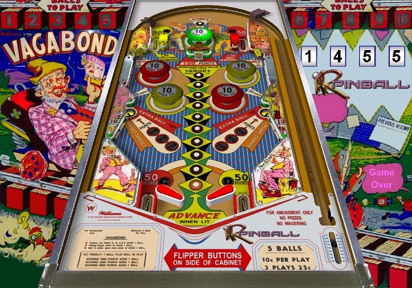 Vagabond (Williams) 1962 / VP8 - balls: 5 / graphic: 2 / lost: 6 / game: 6 / layout: 6 / fun: 3- score VP 8: 4.316Valiant (Williams) 1962 / VP9 - balls: 5 / graphic: 5 / lost: 1 / game: 2 / layout: 6 / fun: 4- score VP 9: 3.302Vector Pinball (Android) 2016 / VP10 - balls: 3 / graphic: 5 / lost: 5 / game: 4 / layout: 6 / fun: 5- score VP10: 1.101.000Viking (Williams) 1960 / VP8 - balls: 5 / graphic: 2 / lost: 6 / game: 4 / layout: 6 / fun: 4- score VP 8: 2.442Viking (Bally) 1980 / VP8 / also in VPM + FP- balls: 5 / graphic: 2 / lost: 3 / game: 2 / layout: 4 / fun: 1 - score VP 8: 705.840 - score FP : 563.520 / version in Future PinballVolley (Gottlieb) 1976 / VP10 / or FP- balls: 5 / graphic: 2 / lost: 6 / game: 5 / layout: 6 / fun: 5 - score VP 8: 46.850 - score VP 9: 147.080 - score VP10: 186.620 / a killer - score FP :…Voltan (Bally) 1978 / VP8 / or VPM- balls: 3 / graphic: 2 / lost: 4 / game: 3 / layout: 6 / fun: 5- score VP 8: 201.200Vortex (Taito) = Warlok 1983 / VP8 / or VPM- balls: 5 / graphic: 4 / lost: 6 / game: 3 / layout: 5 / fun: 5- score VP 8: 327.250 / similar to BlackoutVulcan (Gottlieb) 1977 / VP10 - balls: 5 / graphic: 3 / lost: 6 / game: 5 / layout: 6 / fun: 4 - score VP 8: 217.150 - score VP10: 89.640 / impossible; when do the targets get up again?Underwater (Recel) = Torpedo (Petaco) 1976 / VP10&n- balls: 5 / graphic: 3 / lost: 4 / game: 4 / layout: 5 / fun: 5- score VP10: 757.000 / =Torpedo, awkward layout, last ball double bonusUrban Chaos (CD Extreme Pb) 1995 / VP8 - balls: 3 / graphic: 3 / lost: 6 / game: 5 / layout: 3 / fun: 4 - score VP 8: 115.552.000 / remake of one pinsim of "CD Extreme Pinball"Vampire (Bally) 1971 / VP10 / or FP- balls: 5 / graphic: 1 / lost: 6 / game: 2 / layout: 6 / fun: 5- score VP 8: 98.130- score VP10: 94.870 / unplayable T ... VP recreationsW... VP recreations