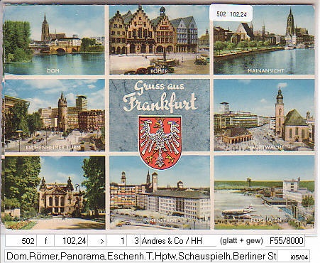 Dom, Römer, Panorama, Eschenh.T, Hptw, Schauspielh, Berliner Str, Flgh (glatt + gew)