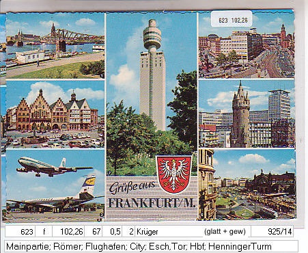 Mainpartie; Römer; Flughafen; City; Esch, Tor; Hbf; Henninger Turm (glatt + gew)