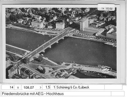 Friedensbrücke mit Blick auf das AEG-Hochhaus