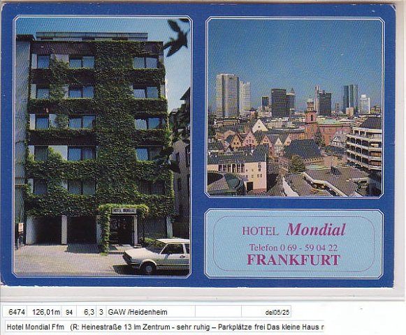 Hotel Mondial Ffm (R: Heinestraße 13 Im Zentrum - sehr ruhig – Parkplätze frei Das kleine Haus mit Niveau 60322 Ffm)