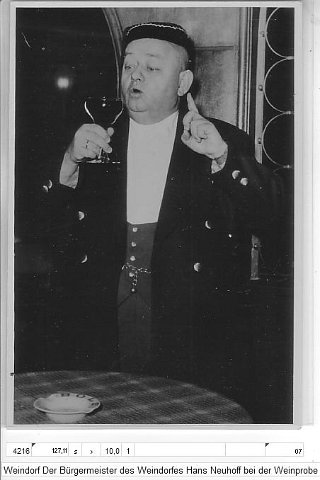 Weindorf Der Bürgermeister des Weindorfes Hans Neuhoff bei der Weinprobe
