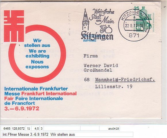 Int.Ffmer Messe 3.-6.9.1972 Wir stellen aus