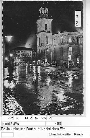 Paulskirche und Rathaus; Nächtliches Ffm (ohne/mit weißem Rand, R: Textposition)