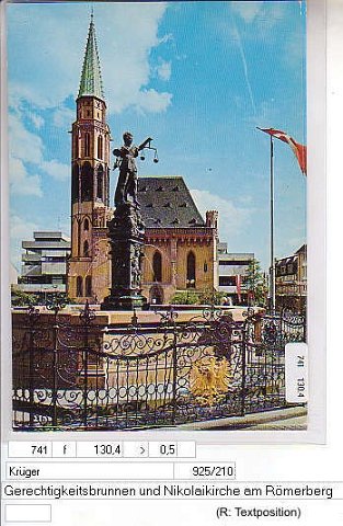 Gerechtigkeitsbrunnen und Nikolaikirche am Römerberg (R: Textposition)