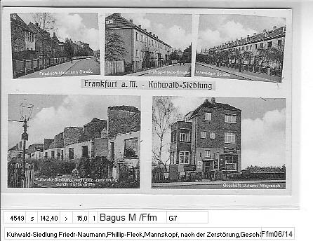 Kuhwald-Siedlung Friedr-Naumann, Phillip-Fleck, Mannskopf, nach der Zerstörung, Geschäft Weyrauch