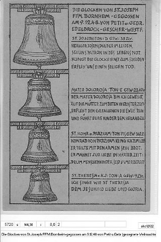 Die Glocken von St.Joseph FFM.Bornheim-gegossen am 9.12.48 von Petit u.Gebr (gesegnete Weihnachten!