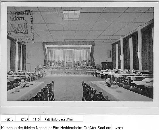 Klubhaus der fidelen Nassauer Ffm-Heddernheim Größter Saal am Platze