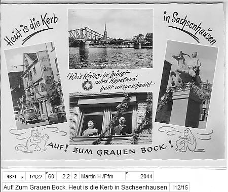 Auf! Zum Grauen Bock. Heut is die Kerb in Sachsenhausen