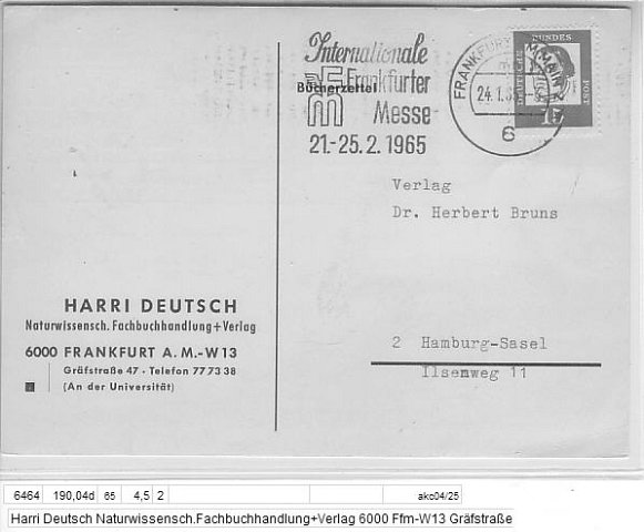 Harri Deutsch Naturwissensch.Fachbuchhandlung+Verlag 6000 Ffm-W13 Gräfstraße 47