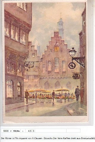 Der Römer in Ffm Aquarel von H.Clausen Eduscho Der feine Kaffee direkt aus Bremen