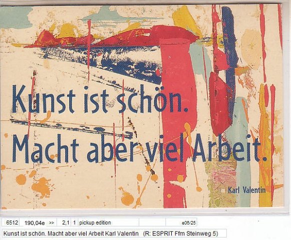 Kunst ist schön. Macht aber viel Arbeit Karl Valentin (R: ESPRIT Ffm Steinweg 5)