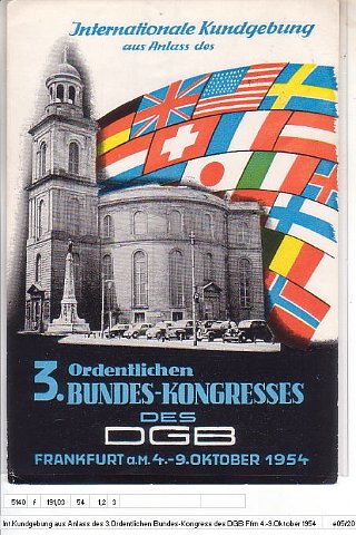 Int.Kundgebung aus Anlass des 3.Ordentlichen Bundes-Kongress des DGB Ffm 4.-9.Oktober 1954