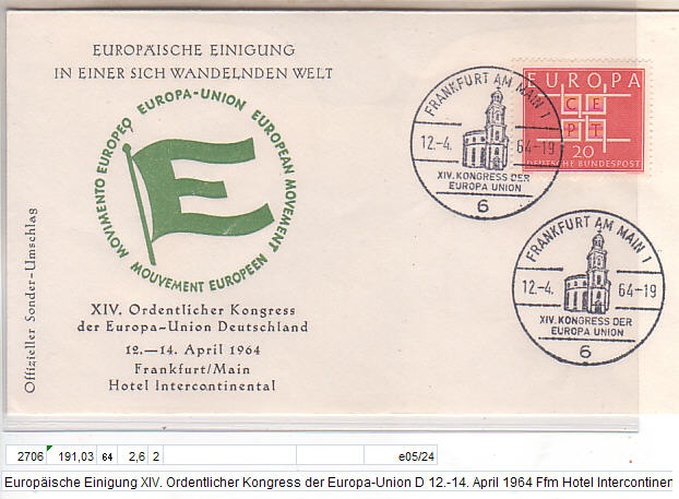 Europäische Einigung XIV. Ordentlicher Kongress der Europa-Union D 12.-14. April 1964 Ffm Hotel Intercontinental