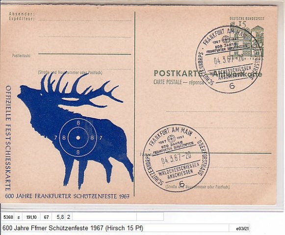 600 Jahre Ffmer Schützenfeste 1967 (Hirsch 20 Pf)